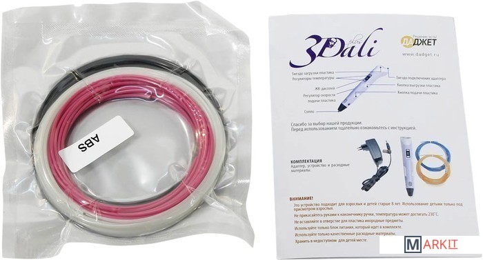 | Комплектация | 3D-ручка 3Dali Plus;Адаптер питания;Руководство пользователя;Трафареты;Подставка для ручки;Стартовый набор PLA пластика / 3D-ручка 3Dali Plus;Адаптер питания;Руководство пользователя;Трафареты;Подставка для ручки;10 м пластика ПЛА. |