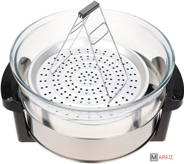 | Комплект поставки | расширительное кольцо, поднос для жарки и запекания, пароварка, низкая решетка, высокая решетка, щипцы |