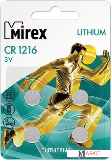 Markit » Батарейки, аккумуляторы, зарядные » Батарейка Mirex CR1216 литиевая блистер 4 шт. 23702-CR1216-E4