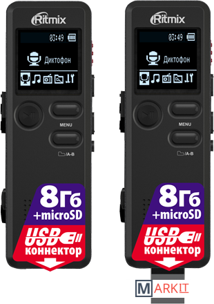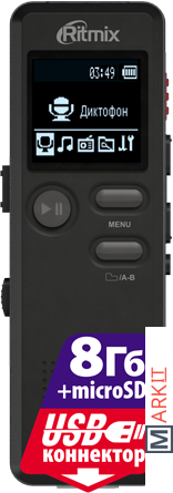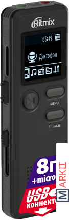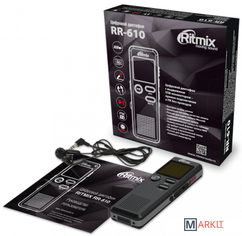Ritmix RR-610 – это цифровой диктофон в сверхкомпактном узком корпусе с функцией музыкального плеера и FM-приёмника.RR-610 прост и удобен в управлении, запись производится в универсальном формате WAV, который не требует конвертации. Устройство оснащено функцией голосовой активации записи VOR. Данная функция позволяет начинать запись автоматически при обнаружении устройством каких-либо звуков. Имеется разъём для подключения внешнего микрофона.