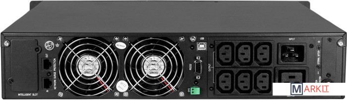 ИБП с двойным преобразованием Rack Tower универсального исполнения 4U 3000 ВА / 2700 Вт без встроенных АКБ, ЗУ 8А напряжение АКБ 96 VDC (8 АКБ), 6 розеток IEC-320 С13, 1 розетка IEC-320 С19 , SNMP слот, USB, RS232, EPO