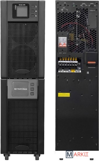 ИБП с двойным преобразованием напольного исполнения 10000 ВА / 9000 Вт встроенные АКБ в корпусе 20x9Ач, клеммный терминал, SNMP слот, USB, RS232, EPO, порты параллельного подключения
