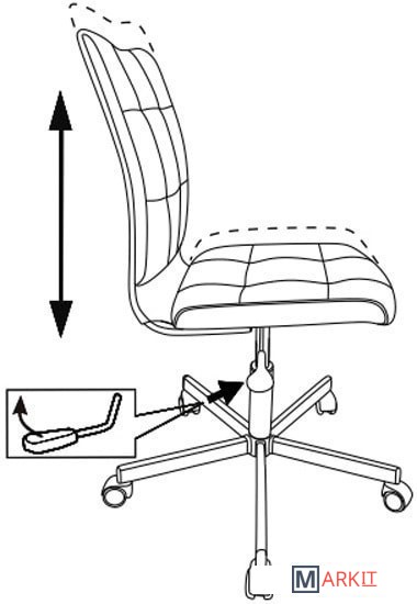 Колеса оснащены тормозом безопасности, реагирующим на изменение давления: стул не откатывается, когда вы садитесь или встаете.