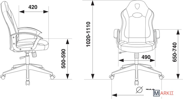 Высота кресла 102 — 111 см