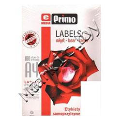 | Примечание | Бумажные наклейки E-primo демонстрируют высокое качество и производительность, не застрянут и не сомнутся в копировальном аппарате или принтере. Нужная информация хорошо и быстро распечатывается на струйном или лазерном принтере. Используются как для маркировки товаров в магазинах, на складах, печати штрих кодов так и для адресации писем, посылок, бандеролей, архивных папок, дискет так и для множества других предметов. |