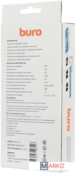 Markit » Стабилизаторы, сетевые фильтры, удлинители » Сетевой фильтр Buro 800SH-1.8-B