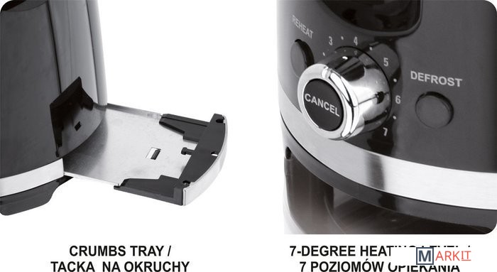 система центрирования хлеба обеспечит равномерное поджаривание хлеба без риска обжечь краяхранение кабеля в базенескользящие ножкикабель: 75смхромированная ручка и ползунокРазмер отверстия среза: 13,5 х 3,5 см